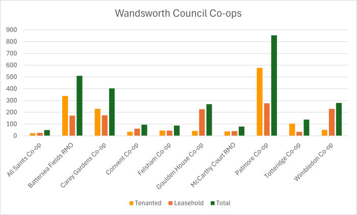 Housing co-ops everywhere are different as they are driven by the people who live and work within each organisation. There are several co-ops in the borough of Wandsworth, each with its own character. Within certain parameters set by the council, all those co-ops have a level of autonomy around how they manage themselves. Decisions might be affected by location, demographics and size. As you can see below, our co-op is relatively small, which means the Estate Manager, Lorriane, knows pretty much everyone who lives on and/or owns a property here.